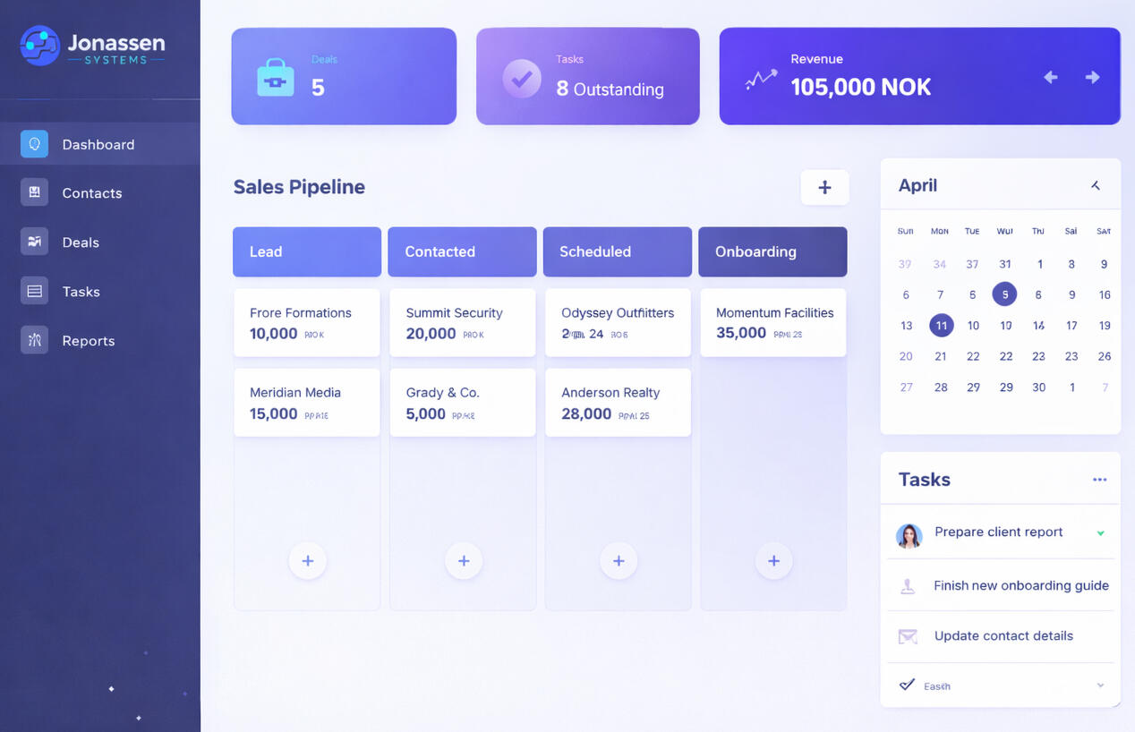 CRM Setup • Client Onboarding Systems • Booking & Scheduling • Workflow Automation